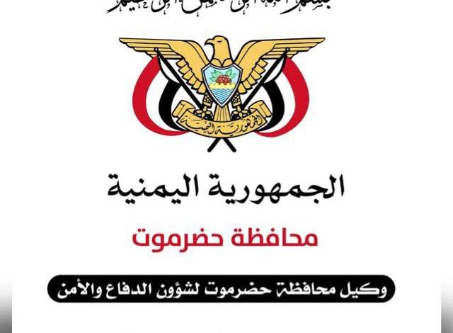 بيان صادر عن مكتب وكيل محافظة حضرموت لشؤون الدفاع والأمن