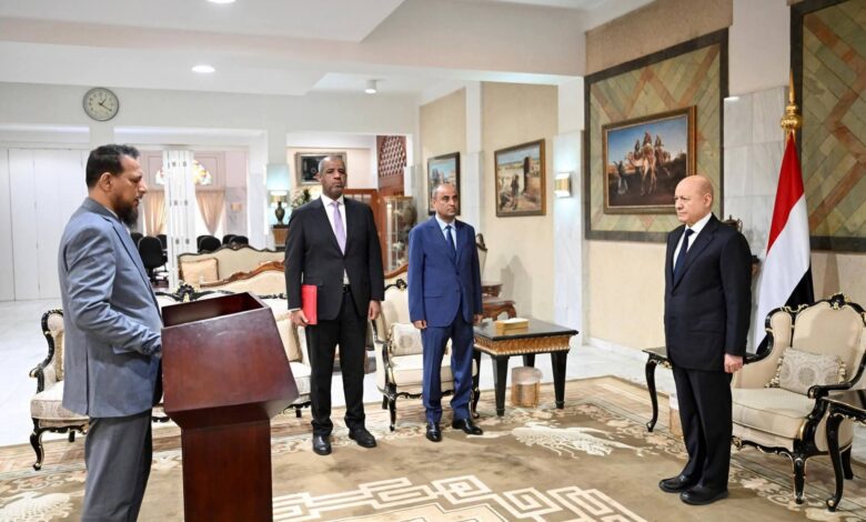 محافظ عدن يؤدي اليمين الدستورية أمام رئيس مجلس القيادة الرئاسي