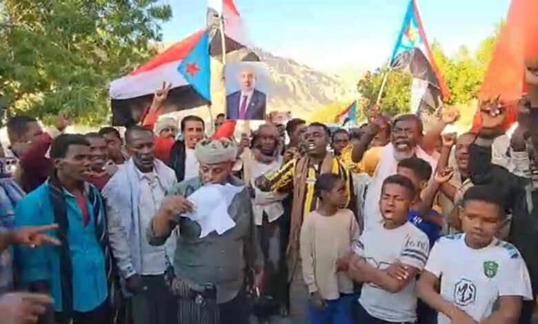 تظاهرة جماهيرية في مديرية “حجر” بحضرموت وفاءً للمجلس الانتقالي والتمسك بالإعلان الدستوري