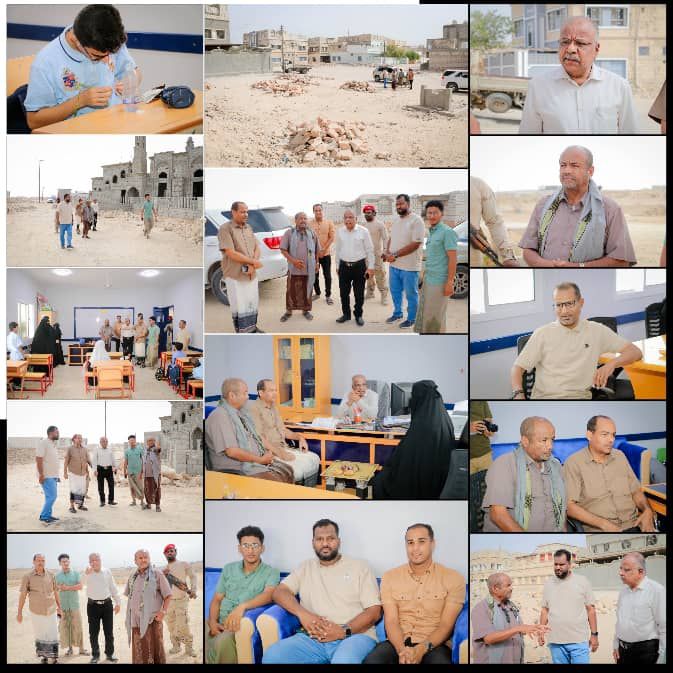 مدير عام مديرية غيل باوزير يطّلع على الأراضي المخصصة للمكاتب التنفيذية بالمديرية ويزور مدرسة المزيني