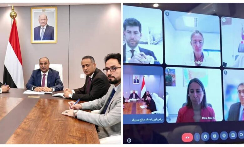 عقد رئيس مجلس الوزراء سالم صالح بن بريك اليوم الإثنين اجتماعاً عبر الاتصال المرئي مع عدد من البعثات الدبلوماسية والبنك الدولي، خُصص لمناقشة آليات وقنوات الدعم الممكنة للحكومة، بما يسهم في تعزيز الاستقرار الاقتصادي وتخفيف الأعباء الإنسانية.