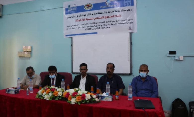 برعاية محافظ حضرموت الوكيل الجيلاني : يدشن الدورة التدريبية لفرق المسح الميداني لتسجيل الأسر المستهدفة للإستفادة من خدمات البرنامج بمديرية بروم ميفع