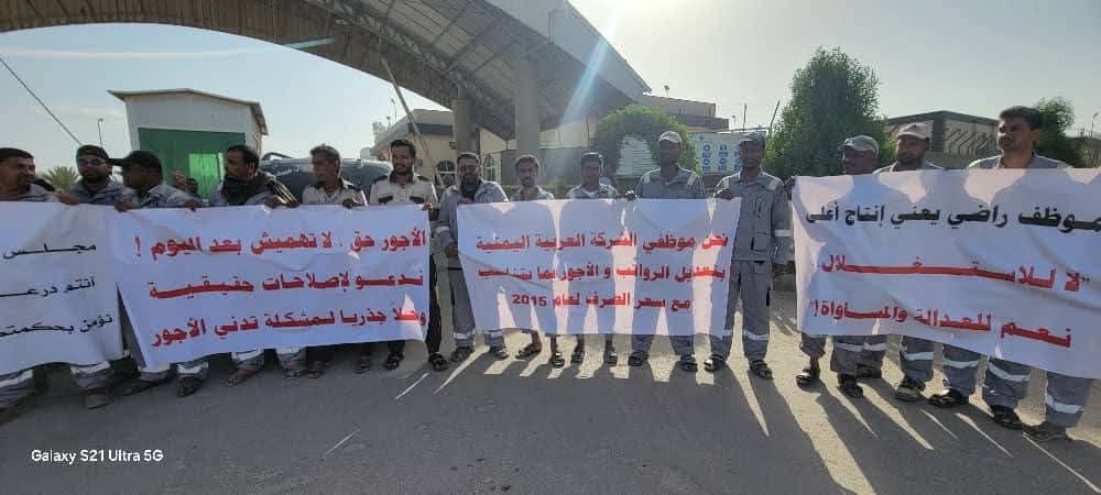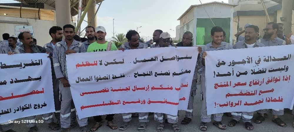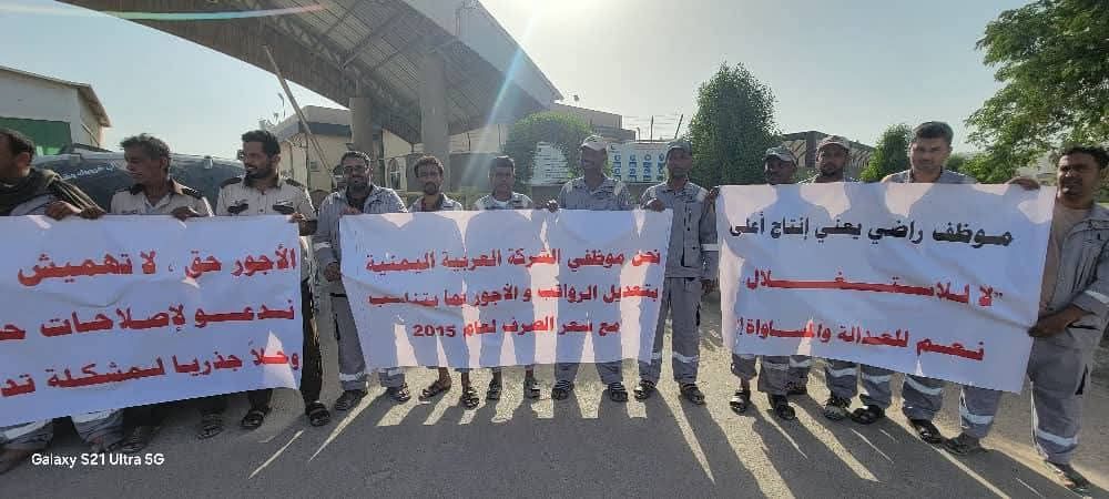 في ظل التدهور المستمر في قيمة العملة الوطنية والارتفاع الحاد في أسعار المواد الغذائية والخدمات الأساسية، نفذ موظفو وعمال الشركة العربية اليمنية للأسمنت وقفتهم الاحتجاجية الرابعة، مجددين مطالبتهم بتحسين أوضاعهم المعيشية والوظيفية، وسط استمرار التجاهل من قبل إدارة الشركة.