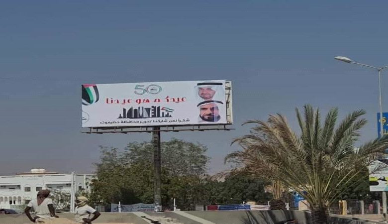 قامت الحملة الشعبية لشكر دولة الإمارات العربية المتحدة بمحافظة حضرموت، بنصب عدد من اللوحات العملاقة في بعض مدن ومديريات ساحل حضرموت وذلك بمناسبة العيد الوطني الإماراتي (عيد الاتحاد).