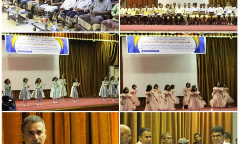 شهدت القاعة الكبرى بديوان مكتب وزارة التربية والتعليم بمحافظة حضرموت صباح اليوم الخميس الموافق السادس عشر من ديسمبر الحفل الخطابي والفني والتكريمي للفائزين الثلاثة في المسابقة المنهجية على مستوى ثانويات ومجمعات المحافظة، إضافة إلى الإنشاد الديني للمرحلتين الأساسية والثانوية، وفرق التمثيل المسرحي بالمديريات، وطلاب الثانوية النموذجية الذين شاركوا بفعالية ونجاح في المسابقة العالمية للذكاء الاصطناعي والروبوت، والبطولة الوطنية الثالثة وذلك برعاية كريمة من محافظ حضرموت قائد المنطقة العسكرية الثانية اللواء الركن فرج سالمين البحسني