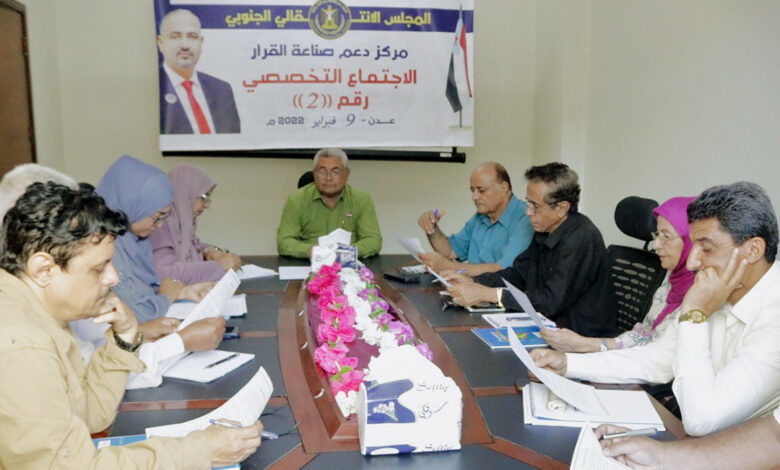 عقد مركز دعم صناعة القرار في المجلس الانتقالي الجنوبي، اليوم الأربعاء، الإجتماع التخصصي الثاني برئاسة الدكتور خالد بامدهف رئيس المركز.
