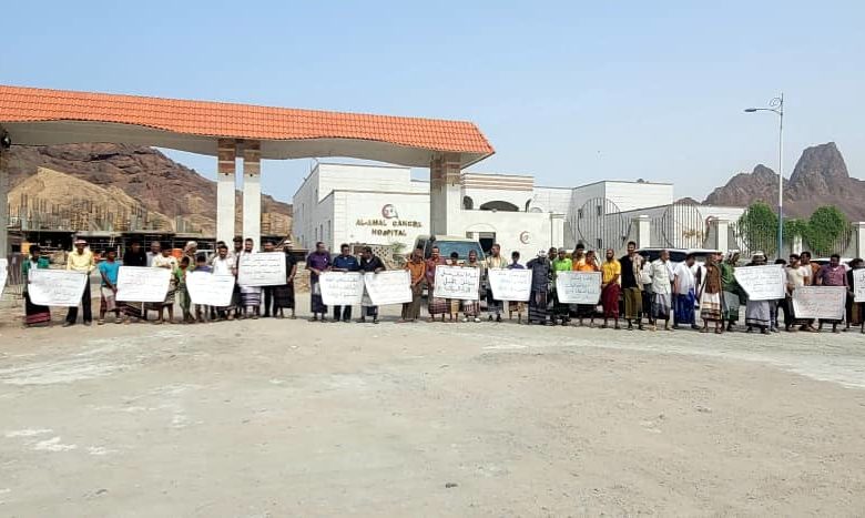 وقفة احتجاجية أمام مستشفى الأمل لعلاج الأورام السرطانية بالعاصمة عدن