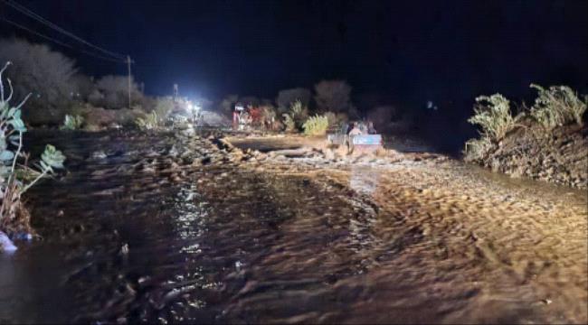 أمطار غزيرة وتدفق سيول في مديرية بيحان بشبوة