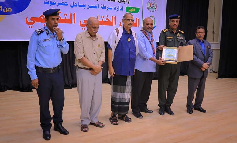 بحفل ختامي تكريمي .. إدارة شرطة السير بساحل حضرموت تختتم أنشطة وفعاليات أسبوع المرور العربي للعام 2022م