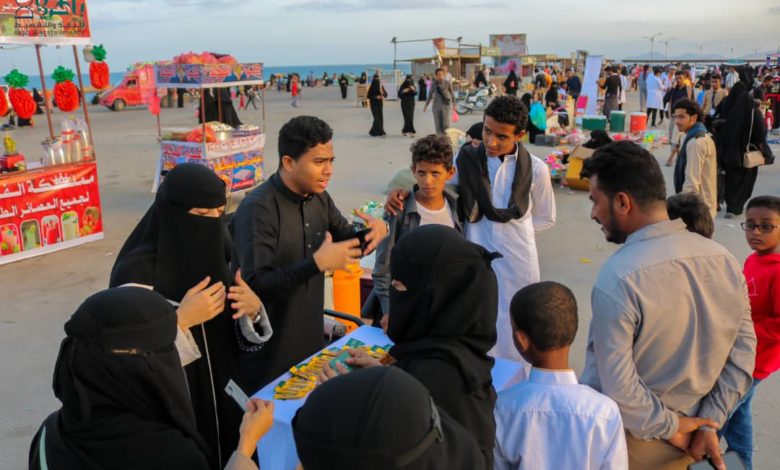 فريق التسويق التابع لمحلات “باطرفي للنقد والتقسيط” في زيارة لمرتادي شارع الستين “المنصة” بالمكلا