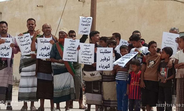 شبوة : وقفة احتجاجية سلمية لابناء الروضة للتنديد بانقطاع الكهرباء