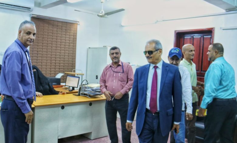 وأثناء زيارته لفرع عدن اطلع رئيس المؤسسة على مستوى الانضباط الوظيفي في إدارات الشؤون الإدارية والمالية والمنافع والاشتراكات والتفتيش.. ومختلف إدارات فرع المؤسسة بعدن، وتبادل مع الموظفين التهاني والتبريكات بعيد الأضحى المبارك، كما استمع من مدراء العموم إلى شرح حول سير العمل ومستوى الانضباط في أول آيام الدوام الرسمي عقب إجازة العيد والاستعدادات لاستئناف تنفيذ أنشطة العمل في المركز والفروع بالمحافظات المحررة.