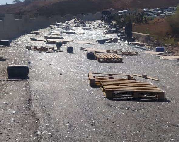 عاجل.. انقلاب قاطرة تحمل زجاج في نقيل النقبة بشبوة