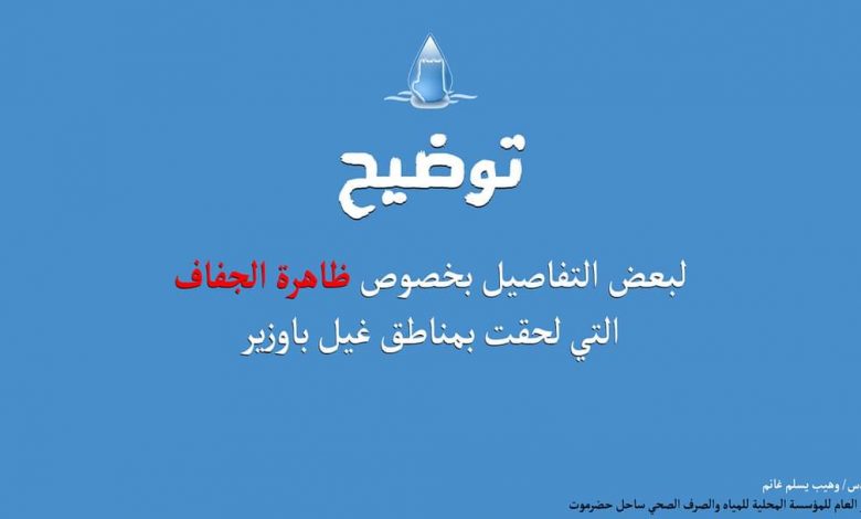 مدير مؤسسة المياه بساحل حضرموت يوضح بعض التفاصيل بخصوص ظاهرة الجفاف التي لحقت بمناطق غيل باوزير