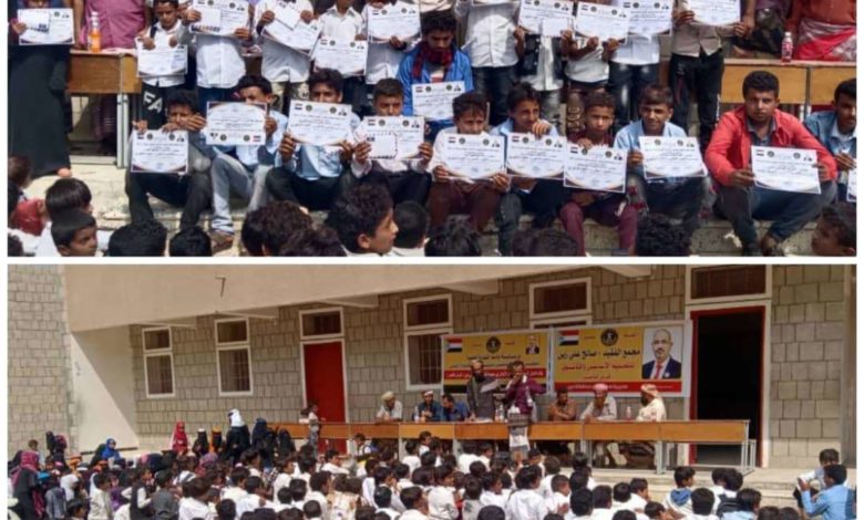 برعاية انتقالي سرار .. حفل تكريم أوائل الطلاب في مجمع الفقيد صالح علي زين ( قرض)