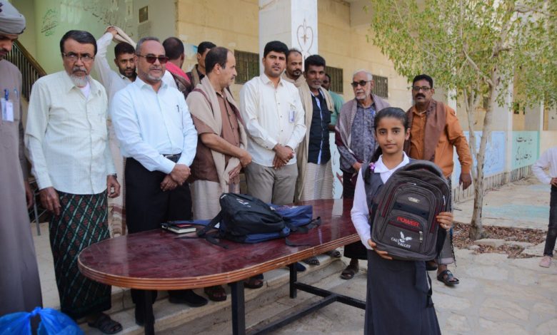 سيئون.. شركة كالفالي بتروليوم توزع حقائب مدرسية على طلاب مناطق الامتياز النفطي