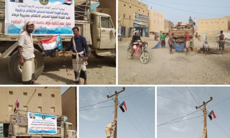 انتقالي عرماء بشبوة يدشن نظافة السوق العام ورفع اعلام الجنوب